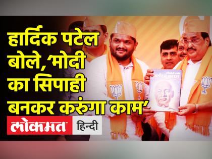 ‘मोदी का सिपाही बनकर करुंगा काम’ By योगेश सोमकुंवर | Updated: June 2, 2022 18:44 ISTOpen in Appपाटीदार नेता हार्दिक पटेल ने बीजेपी का दामन थाम लिया है. उन्हें गुजरात बीजेपी अध्यक्ष सीआर पाटील और राज्य के पूर्व उप-मुख्यमंत्री नीतिन पटेल ने पार्टी में शामिल करवाया, देखें ये वीडियो. और पढ़ें Subscribe to Notifications