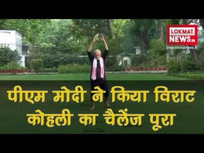 खेल मंत्री राज्यवर्धन राठौड़ के द्वारा शुरू किए गए फिटनेस चैलेंज को प्रधानमंत्री नरेंद्र मोदी ने भी अब स्वीकार कर लिया है. बुधवार को प्रधानमंत्री ने अपने ट्विटर अकाउंट पर एक वीडियो जारी किया. जिसमें मोदी कई तरह के योगाभ्यास कर रहे हैं. वीडियो में प्रधानमंत्री पार्क में कई तरह के अभ्यास कर रहे हैं. पीएम ने इसके साथ ही कर्नाटक के नए मुख्यमंत्री एचडी कुमारस्वामी और खिलाड़ी मनिका बत्रा को नॉमिनेट किया है. आपको बता दें कि प्रधानमंत्री नरेंद्र मोदी को भारतीय क्रिकेट टीम के कप्तान विराट कोहली ने नॉमिनेट किया था