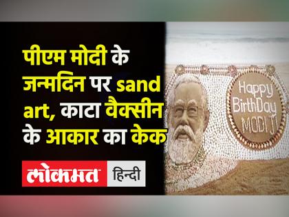 PM Narendra Modi’s Birthday । PM Modi का 71वां जन्मदिन आज, प्रधानमंत्री नरेंद्र मोदी के जन्मदिन पर भोपाल में काटा गया 71 फिट लंबा केक, बीजेपी नेताओं ने 71 फीट लंबे वैक्सीन के आकार का केक काटा, Sand Artist Sudarsan Pattnaik ने भी पीएम मोदी को अपने अंदाज में दी बधाई