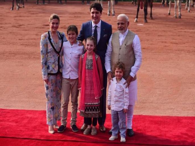 प्रधानमंत्री नरेन्द्र मोदी ने कनाडाई के प्रधानमंत्री जस्टिन ट्रूडो का शुक्रवार सुबह राष्ट्रपति भवन में औपचारिक स्वागत किया। इस दौरान प्रधानमंत्री नरेंद्र मोदी ने गले लगाकर ट्रूडो का स्वागत किया। जस्टिन ट्रूडो के साथ उनका पूरा परिवार भी वहां मौजूद था। यहां पीएम मोदी को ट्रूडो के तीन वर्षीय पुत्र हेड्रियन का मासूमियत ने उनको आकर्षित कर लिया।