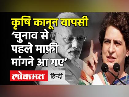 कृषि कानूनों की वापसी के ऐलान को लेकर प्रियंका गांधी ने मोदी सरकार पर तंज कसा है .प्रियंका गाँधी ने कहा कि अब चुनावों में हार दिखने लगी तो इस देश की वास्तविकता का एहसास होने लगा है. वही सुरजेवाला ने कहा कि अब बीजेपी की हार ही देश की जीत है.