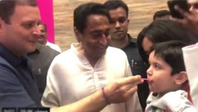 कांग्रेस अध्यक्ष राहुल गांधी अपने दो दिवसीय मध्य प्रदेश के दौरे पर हैं।यहां सोमवार को राहुल गांधी ने एक रोड शो आयोजित किया।इसी बीच राहुल गांधी का एक वीडियो सोशल मीडिया पर खूब वायरल हो रहा है। इसमें राहुल एक बच्चे को अपने चम्मच से आइसक्रीम खिला रहे हैं। यह वीडियो इंदौर की प्रसिद्ध '56' दुकान का है।