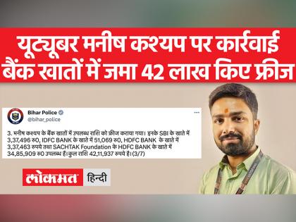 मनीष कश्यप की गिरफ्तारी के लिए छापेमारी जारी, बिहार पुलिस ने चार बैंक खातों में जमा 42 लाख किए फ्रीज By मेघना सचदेवा | Updated: March 16, 2023 16:47 ISTOpen in App और पढ़ें Subscribe to Notifications