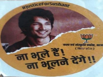 बिहार के विधानसभा चुनाव में सुशांत सिंह राजपूत की मौत चुनावी मुद्दा बन चुकी है. इस मुद्दे को सबसे पहले भाजपा ने उठाया है. भाजपा कला संस्कृति प्रकोष्ठ के बिहार संयोजक वरुण कुमार सिंह ने सुशांत सिंह की तस्वीर साझा करते हुए कहा है कि ना भूले हैं, ना भूलने देंगे. तस्वीर के ऊपर जस्टिस फॉर सुशांत लिखा है. बिहार भाजपा के कार्यालय से लेकर कार, रिक्शा, ठेले पर सुशांत सिंह राजपूत का फोटो वाला स्टिकर छाया हुआ है. भाजपा ने प्रदेश में ऐसे 30 हजार स्टिकर और 30 हजार मास्क बनवाए हैं, जिसे अब बांटा गया है. वरुण सिंह का कहना है कि सुशांत के परिजनों को न्याय दिलाने के लिए वह पिछले 16 जून से ही अभियान चला रहे हैं. उन्होंने बताया कि 14 जून की घटना के बाद से सुशांत को इंसाफ दिलाने के लिए उनके अलावा करणी सेना ने भी स्टीकर और मास्क बनाकर लोगों को बांटा है.
