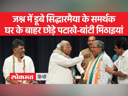 जश्न में डूबे सिद्धारमैया के समर्थक, घर के बाहर छोड़े पटाखे-बांटी मिठाइयां By मेघना सचदेवा | Updated: May 18, 2023 15:04 ISTOpen in App और पढ़ें Subscribe to Notifications