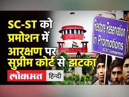 Reservation in promotion पर Supreme Court का फैसला By लोकमत न्यूज़ डेस्क | Updated: January 28, 2022 20:15 ISTOpen in Appसुप्रीम कोर्ट ने सरकारी नौकरियों में अनुसूचित जाति (SC) और अनुसूचित जनजाति (ST) को प्रमोशन में आरक्षण देने के मुद्दे पर शुक्रवार को अहम फैसला सुनाया. कोर्ट ने अपने फैसले में आरक्षण की शर्तों को कम करने से इनकार कर दिया है. और पढ़ें Subscribe to Notifications