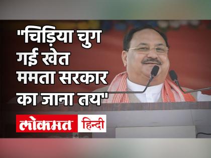 भारतीय जनता पार्टी के राष्ट्रीय अध्यक्ष जेपी नड्डा आज यानी 9 जनवरी को पश्चिम बंगाल का दौरे किया। मिशन बंगाल के तहत सूबे के वर्धमान में पहुंचे जेपी नड्डा ने जनता को संबोधित किया और राज्य की मुख्यमंत्री ममता बनर्जी पर जमकर हमला भी बोला। उन्होंने मुख्यमंत्री ममता पर हमला बोलेत हुए कहा कि यहां से अब ममता का का जाना तय है और बीजेपी का आना तय है। इसके साथ ही नड्डा ने बंगाल में पार्टी के 'एक मुट्ठी चावल' कार्यक्रम की शुरुआत भी की। क्या है बीजेपी का ये कार्यक्रम और ममता बनर्जी पर जेपी नड्डा ने क्या-क्या बोला।। इस वीडियो के जरिए हम आपको बताएंगे, लेकिन सबसे पहले आप हमारे चैनल लोकमत हिंदी को सब्सक्राइब कर लीजिए...