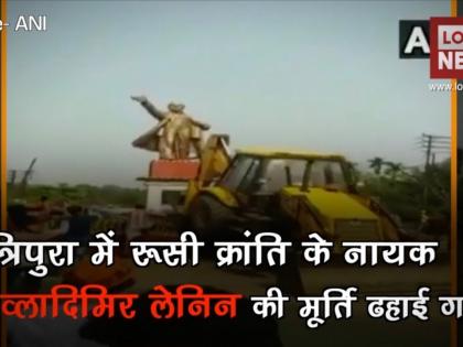त्रिपुरा में विधानसभा चुनाव में बीजेपी की जीत के बाद हिंसा खत्म होने का नाम नहीं ले रही है। 13 जिलों में लगातार हिंसा जारी है। राज्य में तोड़फोड़ और मारपीट के बाद अब वामपंथी स्मारकों को तोड़ा जा रहा है। जिसका आरोप बीजेपी कार्यकर्ताओं पर है। वामपंथी कार्यकर्ताओं को निशाना बनाया जा रहा है। ताजा जानकारी के मुताबिक बीजेपी समर्थकों ने त्रिपुरा के बेलोनिया सबडिविजन में बुलडोजर से रूसी क्रांति के लीडर व्लादिमीर लेनिन की मूर्ति को तोड़ दिया है।