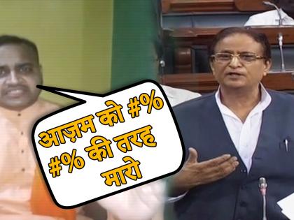 भाजपा नेता आफताब आडवाणी ने आजम खान को लेकर एक विवादित बयान दिया है। गुरुवार को समाजवादी पार्टी के नेता आजम खान ने रमा देवी पर आपत्तिजनक टिप्पणी की थी जिसके बाद से सदन में हंगामा मच गया था। मामला इतना बढ़ गया कि भाजपा नेता आफताब ने कहा कि मैं भारत सरकार से निवेदन करता हूं कि आजम खान का सिर काट दिया जाए और उसे संसद के दरवाजे से लटका कर छोड़ दिया जाए। वीडियो में सुनें आफताब ने और क्या कहा।