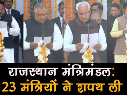 राजस्थान में नयी सरकार में कई जाने पहचाने व दिग्गज चेहरों को जगह नहीं मिल पायी है। उम्मीद की जा रही है कि सरकार अब इन्हें संवैधानिक पदों पर बैठा सकती है।कांग्रेस की अशोक गहलोत सरकार के पहले मंत्रिमंडल के 23 मंत्रियों को सोमवार को यहां शपथ दिलायी गयी। इनमें 13 कैबिनेट व 10 राज्यमंत्री शामिल हैं। मुख्यमंत्री गहलोत के साथ शपथ लेने वाले पायलट को उप मुख्यमंत्री बनाया गया है।17 नये चेहरों के साथ किए गए इस मंत्रिमंडल विस्तार में कई दिग्गज चेहरों को जगह नहीं दी गयी है। इनमें कांग्रेस के दिग्गज नेता व पूर्व केंद्रीय मंत्री सीपी जोशी, हेमाराम चौधरी, दीपेंद्र सिंह शेखावत, परसराम मोरदिया, राजेंद्र पारीक, अशोक बैरवा, महेश जोशी, डा जितेंद सिंह, महेंद्रजीत सिंह मालवीय, बृजेंद्र ओला व राज कुमार शर्मा प्रमुख हैं।