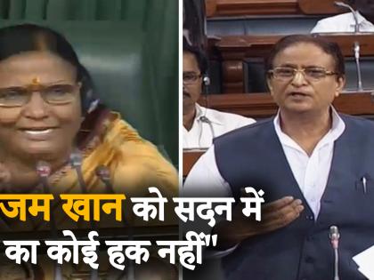 अपने आपत्तिजनक बयानों से हमेशा चर्चा में रहने वाले सपा सांसद आजम खान ने इस बार फिर एक नया बवाल खड़ा कर दिया है। इस बार आजम खान ने संसद सदन की अध्यक्षता कर रहीं बीजेपी सांसद रमा देवी को लेकर ही आपत्तिजनक टिप्पणी कर डाली। इस बयान के बाद रमा देवी का कहना है कि वे अब स्पीकर से यह मांग करेंगी कि आजम खान की लोकसभा सदस्यता खत्म की जाए। लेकिन बात इतनी बढ़ी कैसे... आखिर आजम खान ने गुरुवार को संसद सदन में ऐसा क्या कह दिया सुनिए इस वीडियो में...