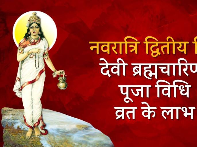 शारदीय नवरात्र के दूसरे दिन मां ब्रह्मचारिणी की पूजा-अर्चना की जाती है। ब्रह्म का अर्थ है तपस्या और चारिणी का अर्थ है आचरण करने वाली। इससे ब्रह्मचारिणी का अर्थ हुआ तप का आचरण करने वाली। नवरात्रि में दुर्गा पूजा के नौ रूपों की पूजा-उपासना की जाती है। कठिन तपस्या करने के कारण इस देवी को तपश्चारिणी अर्थात् ब्रह्मचारिणी नाम से बुलाया जाता है। आपने जिन देवी-देवताओ एवं गणों व योगिनियों को कलश में आमंत्रित किया है उनकी फूल, अक्षत, रोली, चंदन, से पूजा करें उन्हें दूध, दही, शर्करा, घृत, व मधु से स्नान करायें व देवी को जो कुछ भी प्रसाद अर्पित कर रहे हैं उसमें से एक अंश इन्हें भी अर्पण करें। प्रसाद के पश्चात आचमन और फिर पान, सुपारी भेंट कर इनकी प्रदक्षिणा करें। कलश देवता की पूजा के पश्चात इसी प्रकार नवग्रह, दशदिक्पाल, नगर देवता, ग्राम देवता, की पूजा करें। इनकी पूजा के पश्चात माता ब्रह्मचारिणी की पूजा करें।
