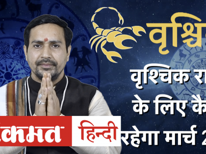 जानें आचार्य उमेश बडोला से वृश्चिक राशि के जातकों के लिया कैसा रहेगा मार्च 2020. मार्च का महिना शुभ बनाने के लिए कौनसे उपाय करने होंगे. वृश्चिक राशि कार्यक्षेत्र में तेजी बनी रहेगी कारोबारियों के लिए फायदेमंद होगा आर्थिक स्थिति मजबूत बनी रहेगी पारिवारिक जीवन अच्छा रहेगा रुके हुए कार्यों में सफलता मिलेगी विद्यार्थियों के लिए समय संघर्ष और परिश्रम वाला रहेगा