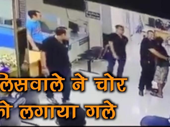 पुलिसवाले ने चोर को लगाया गले, वीडियो वायरल By लोकमत समाचार ब्यूरो | Updated: November 8, 2018 08:30 ISTOpen in Appथाइलैंड में एक चोर को पुलिसवाले द्वारा गले लगाने का वीडियो तेजी से वायरल हो रहा है। इसमें एक पुलिसवाले ने चोर को सबक सिखाने का नया नजरिया अपनाया। उसने चोर को पकड़कर जेल में बंद करने के और उसकी पिटाई करने के बजाए उसे गले से लगा लिया। और पढ़ें Subscribe to Notifications
