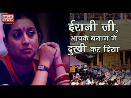 सबरीमाला मंदिर विवाद पर केंद्रीय मंत्री स्मृति ईरानी ने कहा कि पूजा करने का अधिकार सभी को है, लेकिन अपमान करने का नहीं। स्मृति ने मुंबई में ऑब्जर्वर रिसर्च ऑर्गनाइजेशन और ब्रिटिश डिप्टी हाईकमीशन की 'यंग थिंकर्स' कॉन्फ्रेंस में बोल रही थीं। उन्होंने कहा कि ये सीधा-सा कॉमन सेंस है। क्या आप माहवारी के ब्लड में भीगा सैनेटरी पैड लेकर अपने दोस्त के घर जाएंगे? आप ऐसा नहीं करेंगे। और आपको लगता है कि आप मंदिर जाते वक्त ऐसा करेंगे तो ये सम्मानजनक होगा? यही फर्क है और यह मेरी निजी राय है।