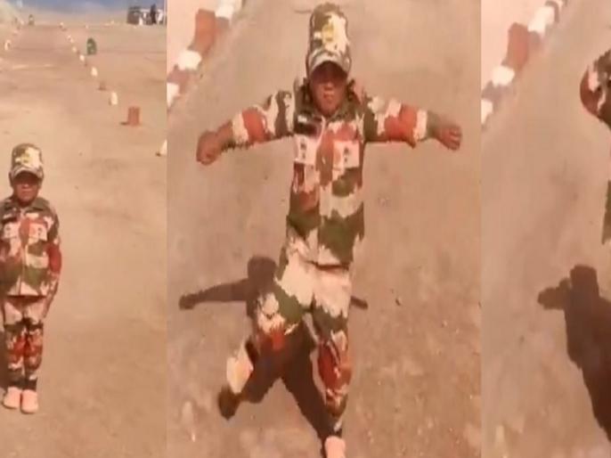 5 साल के इस बच्चे का नाम नवांग नामग्याल है। सेना की वर्दी पहने नवांग ITBP के जवानों को सलामी दे रहे हैं। पीछे से मिल रहे निर्देश के मुताबिक नवांग कभी आगे चलता है तो कभी सैल्यूट मारता है। सोशल मीडिया पर ये वीडियो खूब वायरल हो रहा है। नवांग का क्यूट अंदाज बेहद पसंद किया जा रहा है।