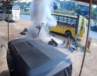 ज़रा हटके : VIDEO: कर्नाटक में मरम्मत के दौरान टायर फटने से मैकेनिक हवा में सिक्के की तरह उछला, देखें सीसीटीवी फुटेज