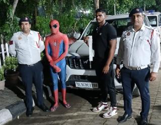 ज़रा हटके : दिल्ली में स्पाइडर मैन पर लगा जुर्माना, कार पर स्टंट करना पड़ा भारी; पुलिस ने पकड़ा