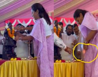 ज़रा हटके : वीडियो: माल्यार्पण के दौरान एनसीपी नेता सुप्रिया सुले की साड़ी में लगी आग, घबराई सांसद हाथ से ही लगी बुझाने आग और फिर....