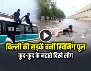ज़रा हटके : दिल्ली की सड़कें बनीं स्विमिंग पूल, कूद-कूद के नहाते दिखे लोग, देखें वीडियो
