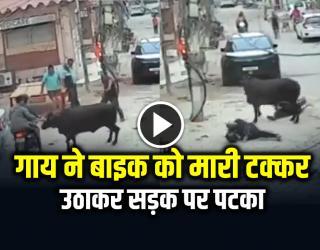 ज़रा हटके : VIDEO: गाय ने बाइक सवार को मारी टक्कर, उठाकर सड़क पर पटका, देखें वीडियो