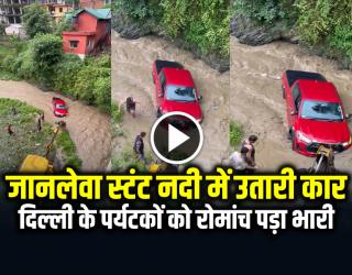 ज़रा हटके : VIDEO: जानलेवा स्टंट नदी में उतारी कार, दिल्ली के पर्यटकों को हिमाचल में रोमांच पड़ा भारी, देखें वीडियो