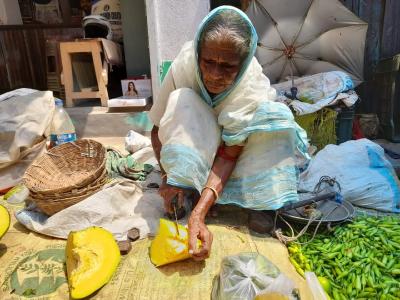 कोलकाता: पश्चिम बंगाल की 102 वर्षीय लक्ष्मी मैती के लिए उम्र महज एक संख्या है, जो अपने परिवार की बुनियादी जरूरतों को पूरा करने के लिए पिछले पांच दशकों से सब्जियां बेचने का काम कर रही हैं। इस उम्र में भी काम करने की अपनी दृढ़ इच्छाशक्ति और हौसले के जरिए लक्ष्मी मैती लोगों के लिए एक मिसाल बनी हुई हैं।