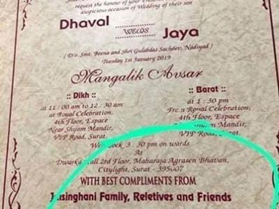 वायरल हो रहे इस कार्ड के जरिए लोगों से साल 2019 में होने वाले लोकसभा के चुनाव में बीजेपी के लिए वोट देने की अपील की गई है, इस कार्ड में सबसे नीचे लिखा है 'लोकसभा चुनाव 2019 में आपका मोदी को दिया वोट ही हमारा गिफ्ट है। इस कार्ड को सूरत के जयसिंघानिया परिवार ने अपने घर हुए 1 जनवरी को संपन्न हुई अपने बेटे की शादी के लिए छपवाया था।