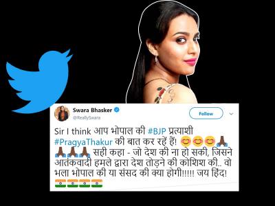 स्वरा भास्कर ने अनुपम खेर के ट्वीट का जवाब प्रज्ञा ठाकुर पर निशाना साधकर दिया।