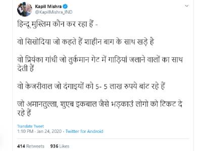 — Kapil Mishra (@KapilMishra_IND) January 24, 2020