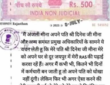 यूपी की एसडीएम ज्योति मौर्य के विवादित प्रकरण के बाद सोशल मीडिया पर राजस्थान की महिला और उसके पति का कथित हलफनामा वायरल हो रहा है, जिसमें वो अपने पति को आश्वस्त कर रही है कि वह अधिकारी बनने के बाद उसे धोखा नहीं देगी।