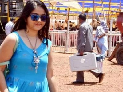 टाइम्स ऑफ इंडिया में छपी एक रिपोर्ट के मुताबिक, काम के लिए योगेश्वरी जैसे ही पोलिंग बूथ पर पहुंची। मीडिया वालों ने उनसे बात करने की कोशिश की और तस्वीरें भी खींची। वायरल तस्वीर में योगेश्वरी एक नीले रंग की गाउन में दिख रहीं है। उनके एक हाथ में हैंड बैग है तो दूसरे हाथ में बैलेट यूनिट। योगेश्वरी ने सनग्लास भी लगाया है।