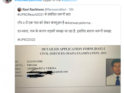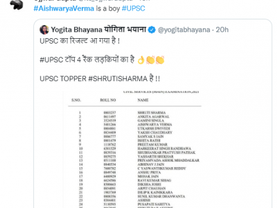 ट्विटर पर हुआ ट्रेंड: UPSC CSE 2021 में चौथे स्थान पर लड़की नहीं लड़का है, इस कारण कल परीक्षा परिणाम आने के बाद पैदा हुआ भ्रम