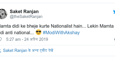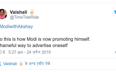 सोशल मीडिया पर कई लोगों का कहना है कि चुनावी समय में एक ग़ैर-राजनीतिक इंटरव्यू के भी राजनीतिक असर हो सकते हैं। ट्विटर यूजर वैशाली ने लिखा है, 'इस तरह मोदी खुद का प्रचार करते हैं। खुद का प्रचार करने का ये शर्मनाक तरीका है।'
