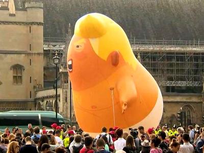 यह वही ब्लिंप है जो पिछले साल ट्रंप की लंदन यात्रा के दौरान बड़े पैमाने पर विरोध स्वरूप उड़ाया गया था। हाल ही में लंदन में तब इसकी दोबारा वापसी हुई जब ट्रंप ने पिछले महीने दौरा किया।