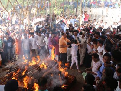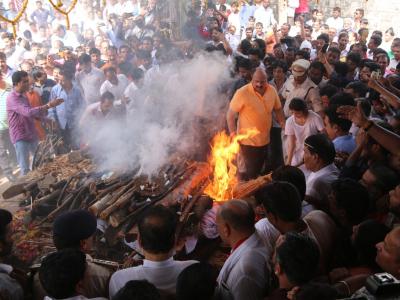 भय्यू महाराज का बुधवार को इंदौर में अंतिम संस्कार कर दिया गया। उनकी बड़ी बेटी कुहू ने उन्हें मुखाग्नि दी है।