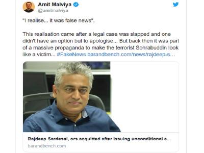 'माफ कीजिए, झूठी खबर चलाई', IPS के खिलाफ फेक न्यूज चलाने पर राजदीप सरदेसाई ने कोर्ट से मांगी माफी, अमित मालवीय ने किया ट्रोल
