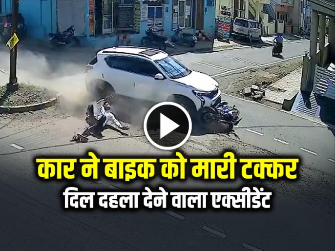 ठळक मुद्देVIDEO: कार ने बाइक को मारी टक्कर, दिल दहला देने वाला एक्सीडेंट, देखें वीडियो