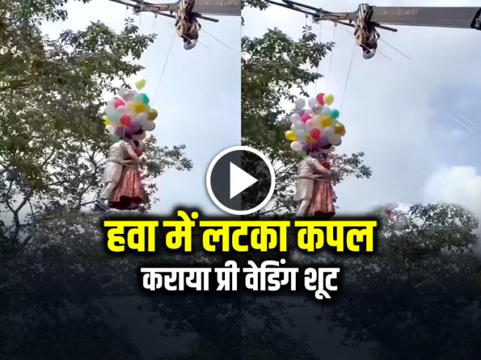 Couple Pre Wedding Shoot: त्योहारों के साथ शादियों का सीजन भी शुरू होने वाला है, ऐसे में एक कपल ने ऐसा प्री-वेडिंग शूट कराया है की जिसने भी देखा वो हैरान रह गया। ये कपल हवा में लटककर बेहद खतरनाक अंदाज में अपना फोटोशूट करवाता रहा, दूल्हा-दुल्हन रंगीन गुब्बारों के साथ ट्रैडिशनल आउटफिट में हवा में लटके हुए फोटोशूट करवाता रहा। क्रेन के सहारे लटके इस कपल को जिसने भी देखा वो हैरान रह गया की ऐसा रिस्क कोई कैसे ले सकता है।