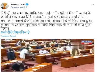 इन सबके बीच पाकिस्तान की संसद का एक वीडियो वायरल हो रहा है। दावा किया जा रहा है कि यूक्रेन से पाकिस्तानी छात्रों के भारतीय झंडों के सहारे सुरक्षित निकलने की खबरों पर पाकिस्तान की संसद मोदी-मोदी के नारे लगे।