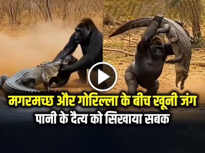 ठळक मुद्देVIDEO: मगरमच्छ और गोरिल्ला के बीच खूनी जंग, पानी के दैत्य को सिखाया सबक, देखें वीडियो