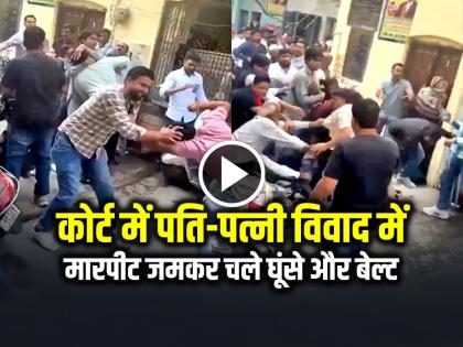 ठळक मुद्देकोर्ट में पति-पत्नी विवाद में दो पक्षों में मारपीट, जमकर चले घूंसे और बेल्ट, देखें वीडियो