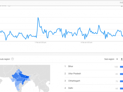 पिछले एक हफ्ते के Google Trends के अनुसार शाहीन बाग को लेकर बिहार में सर्च ज्यादा है। यानि बिहार के लोग शाहीन बाग को लेकर ज्यादा सर्च कर रहे हैं। इसके बाद उत्तर प्रदेश, छत्तीसगढ़ और दिल्ली का नंबर आता है। दिल्ली में 8 फरवरी को चुनाव है और नतीजे 11 को आएंगे।