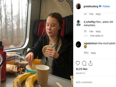 इस तस्वीर पर लोग अब कमेंट कर ग्रेटा को ट्रोल कर रहे हैं। लोगों का कहना है कि क्या ग्रेटा को इसमें प्लास्टिक नहीं दिख रहा है। वहीं एक यूजर ने ग्रेटा के भाषण पर तंज कसते हुए कहा, ग्रेटा आपकी कैसे हिम्मत हुई प्लास्टिक इस्तेमाल करने की।