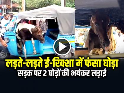 ठळक मुद्देVIDEO: लड़ते-लड़ते ई-रिक्शा में फंसा घोड़ा, सड़क पर 2 घोड़ों की लड़ाई, देखें वीडियो