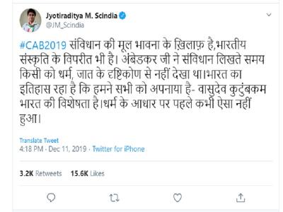 नागरिकता बिल का ज्योतिरादित्य सिंधिया करना चाहते थे विरोध लेकिन हो गई दो चूक, ट्वीट को लेकर जमकर हुए ट्रोल