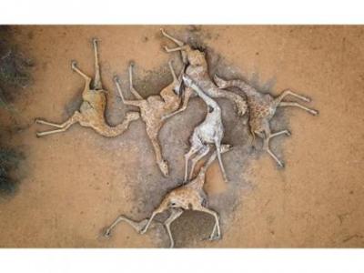वजीर में साबुली वन्यजीव संरक्षण के अंदर छह जिराफ मृत पड़े हुए हैं। यह तस्वीर कथित तौर पर भोजन और पानी की कमी से कमजोर जिराफ के मरने के बाद ली गई है। तस्वीर 10 दिसंबर को ली गई थी। अल जज़ीरा के अनुसार, केन्या के अधिकांश उत्तर में सितंबर के बाद से सामान्य वर्षा के 30 प्रतिशत से भी कम बारिश हुई है, जिससे इस क्षेत्र में भयंकर सूखा पड़ा है।