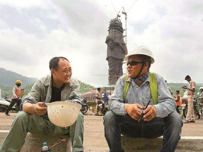Chinese workers at Sardar Patel’s Statue of Unity site in Gujarat.