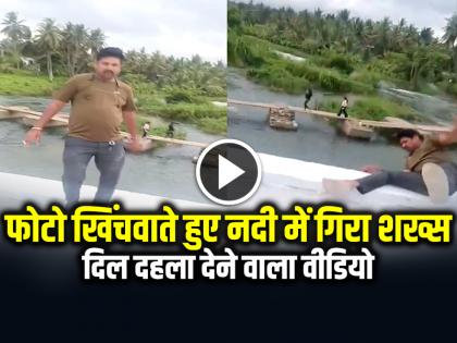 Man Fell into the Kaveri River: कर्नाटक के मंड्या जिले से दिल दहला देने वाला वीडियो सामने आया है, यहां एक शख्स कावेरी नदी के ब्रिज पर फोटो खिंचवा रहा होता है और तभी उसका संतुलन बिगड़ जाता है शख्स सीधा नदी में जा गिरता है। शख्स का नाम महेश बताया जा रहा है और वह दोस्तों के साथ पिकनिक मनाने श्रीरंगपट्टन के कृष्णराज सागर डैम पर आया था। शख्स उफनती कावेरी नदी में गिरते ही बहाव में बह गया, घटना का वीडियो सोशल मीडिया पर तेजी से वायरल हो रहा है।