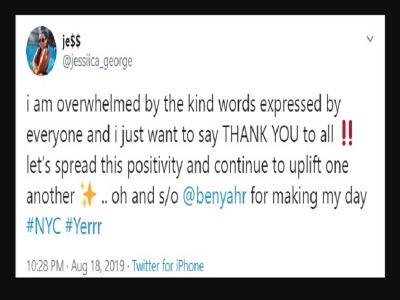 जेसिका ने लोगों का धन्यवाद करते हुये लिखा है, 'मैं उन सभी लोगों का धन्यवाद करती हूं, जिन्होंने मेरे काम की तारीफ कर रहे हैं। इस सकारात्मकता को फैलाएं और दूसरों को आगे बढ़ाने का काम जारी रखें।'